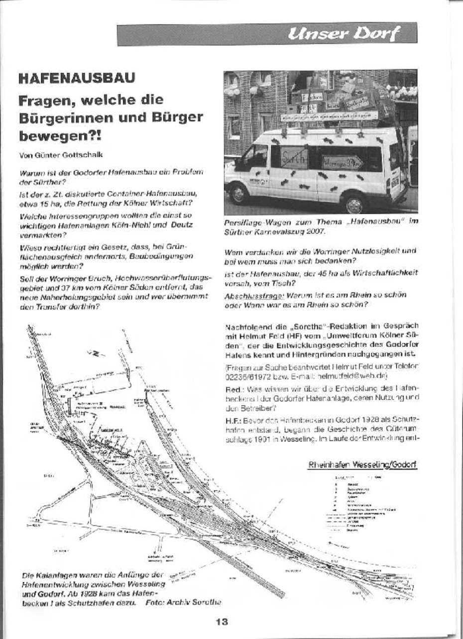 Ulrike Süsser schreibt im Kölner Stadt Anzeiger zum Besuch von Bundesverkehrsminister Herrn w. Tiefensee in Godorf: